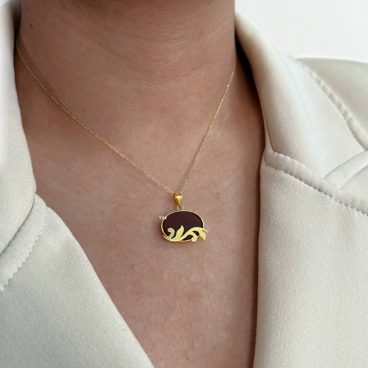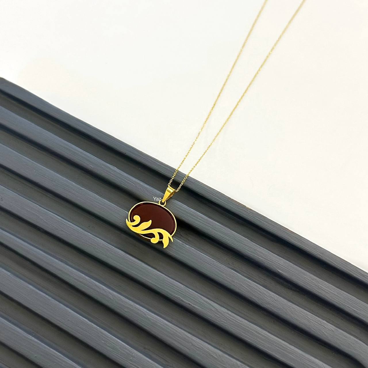 خانه پلاک طلا مدال سنگ عقیق طرح برگ دستساز